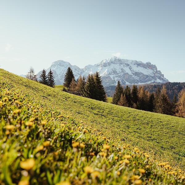 As the altitude increases, so does the consistency of the meadows: from meagre meadows to the larch meadows of Armentara. Along the route you will find wonderful viewpoints, a sulphurous water spring at Al Bagn and several refreshment points where you can refresh yourself with some of the delicious Ladin specialities that can satisfy every palate: try the typical bales (dumplings) or snack on a well-earned slice of strudel.