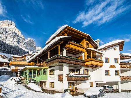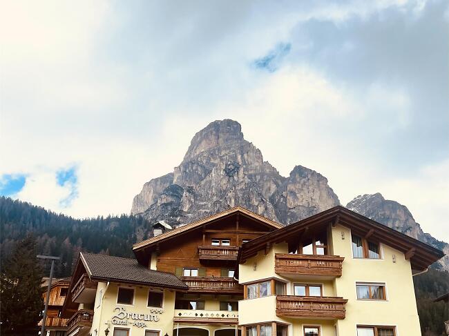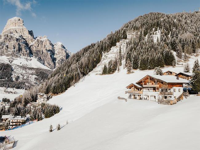 Situated at an altitude of 1,568 metres you’ll find the village of Corvara where, back in the 1930s, Alta Badia’s first ski school and Italy’s first lift facility were founded. A lot of time has flown by since then, yet its outstanding vocation for tourism and hospitality never faded. Hence the modern lift facilities - accessible in both winter and summer, the unique position amidst the enchanting loop of the Sellaronda which can be experienced on skis or by bike as well as the countless itineraries to savour some of the most beautiful hiking and climbing experiences in the Dolomites, are complemented by a first-class hotel, gastronomic and service offer. From haute cuisine restaurants, renowned patisseries, a sophisticated nightlife, trendy shops, rental services meeting the needs of the most demanding guests to a golf course and an ice-skating rink.
