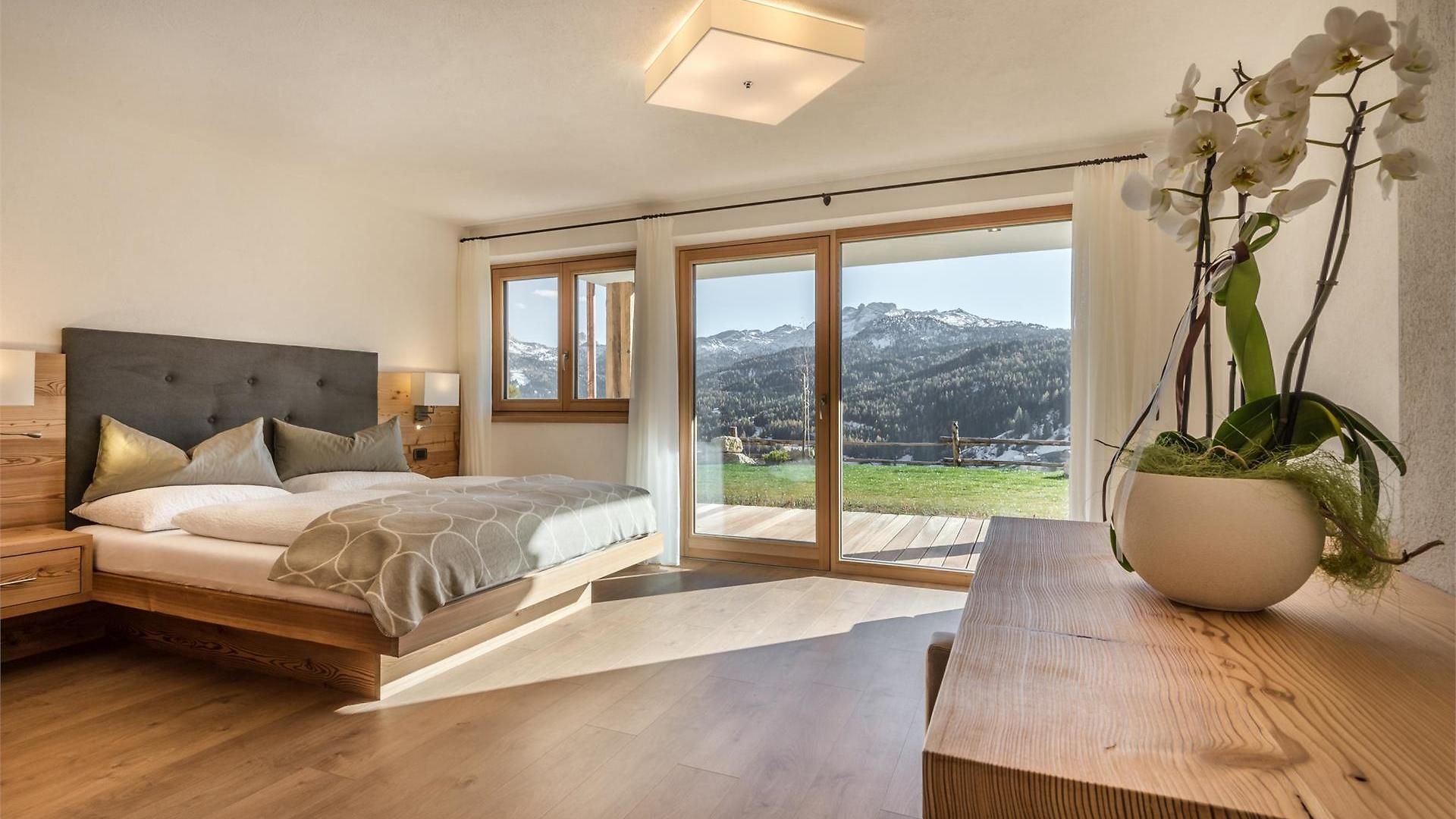 "Ambienti accoglienti nella natura, con vista sulle Dolomiti, per sognare e rilassarsi."