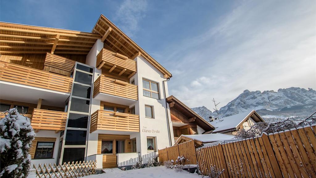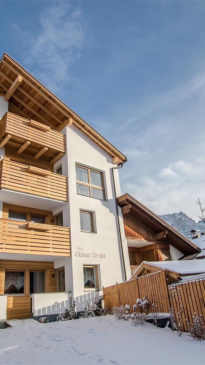Gli appartamenti Ciasa Costa si trovano in una struttura recentemente rinnovata a soli tre minuti a piedi dalla Pensione Camoscio, in una zona tranquillissima di La Villa. Gli appartamenti sono ampi, spaziosi, luminosi e caldi, arredati seguendo gli ultimi trend in fatto di arredamento: la modernità si sposa con lo stile ladino offerto dalle migliori ditte della zona.