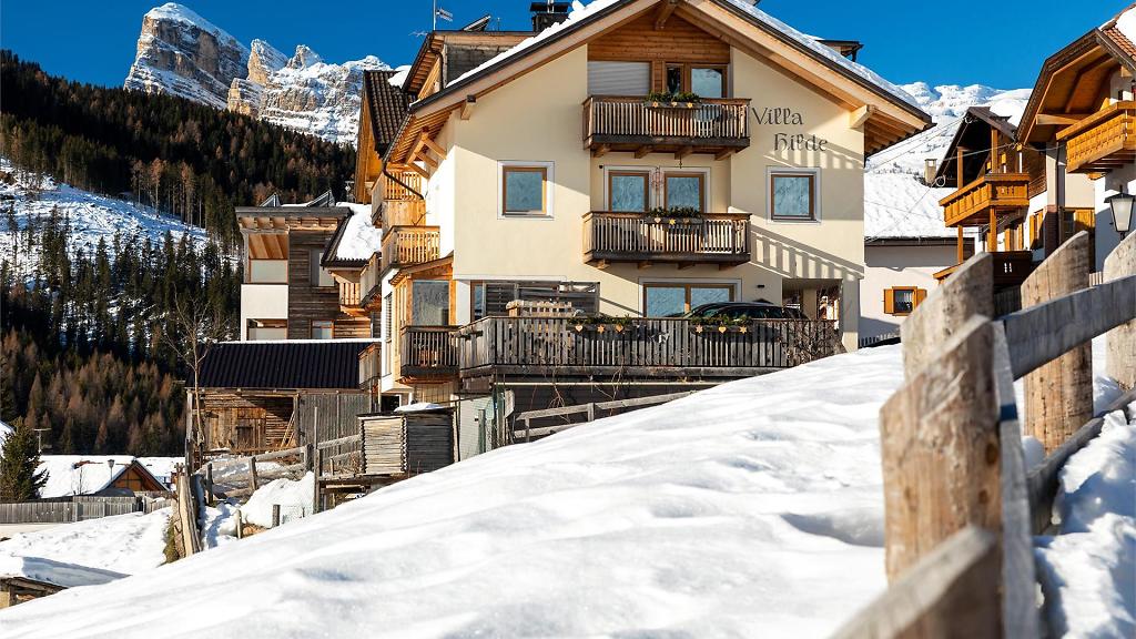 Villa Hilde offre appartamenti spaziosi e confortevoli a San Cassiano, nel cuore delle Dolomiti, ideali per famiglie e coppie. Situata a pochi passi dal centro del paese, è perfetta come punto di partenza per escursioni e passeggiate. Gli ospiti possono godere di viste mozzafiato su boschi e montagne circostanti dalla sua posizione panoramica. L'impianto sciistico Piz Sorega, che collega alla Sella Ronda e al Dolomiti Superski, dista solo 500 metri.