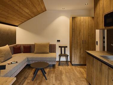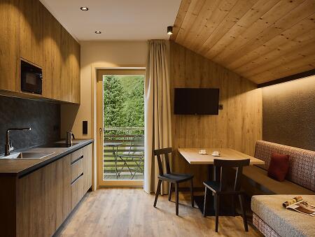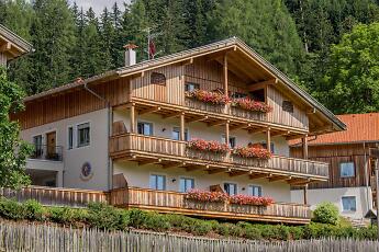 Il nostro residence è collocato in un pittoresco prato in pendio, sotto al Monte Croce, a 15 minuti di cammino da La Villa. E' qui, lontani dal caos che trovi la tua vacanza ai ritmi della natura: sole, pace e l' ineguagliabile panorama dei nostri monti. Abiterete in una casa ecologica con sistemi energetici a basso impatto ambientale. Si tratta infatti di una "CASA CLIMA". Di pertinenza della casa sono la terrazza al sole, il prato per le sdraio ed il parco giochi. Nel seminterrato troverai garage, locale sci e la nostra piccola zona-wellness con bio-sauna e lettini, sauna a infrarossi, vasca idromassaggio all'aperto e kneipp.