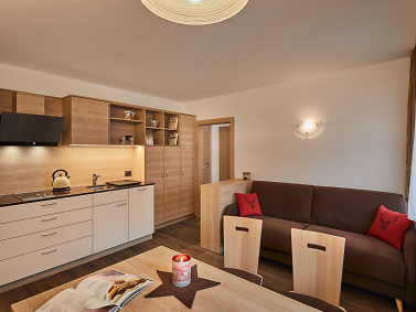 Appartamento situato sulla strada principale con parcheggio privato al piano terra con 1 camera matrimoniale, possibilità di divano letto, 1 bagno con doccia, soggiorno e cucina con frigorifero piano cottura, lavastoviglie, microonde è utensili vari. Nelle vicinanze si trova i noleggi sci , Despar, Pizzeria, Pub, Bar Parafarmacia, erboristeria. In 5 min si arriva sulle piste da sci del Sellaronda.