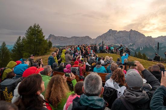 Pura magia all’alba: il potere della musica e la bellezza delle Dolomiti. Prima dell'alba le cabine del Piz La Ila portano a 2100 metri, per offrire uno spettacolo indimenticabile: un concerto live, mentre il sole fa capolino tra le vette.