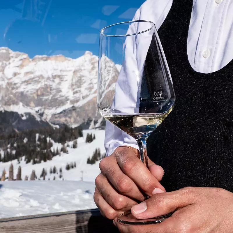 Ma se tutto questo è stato osservato in un anonimo stanzone britannico, con luci fredde e suoni artificiali, di che cosa saprebbe un vino assaggiato a oltre duemila metri, circondati da vette imbiancate e boschi fitti, mentre si respira aria buona e si calpesta la neve? In questo caso, però, non si tratta di un esperimento, ma di Sommelier in pista: l’iniziativa che, da quasi dieci anni, porta turisti e appassionati a scoprire i migliori vini altoatesini in Alta Badia. Decontestualizzato da cantine e rumorosi tavoli di ristorante, il vino può contare qui su un ambiente che amplifica i sensi e favorisce la contemplazione.