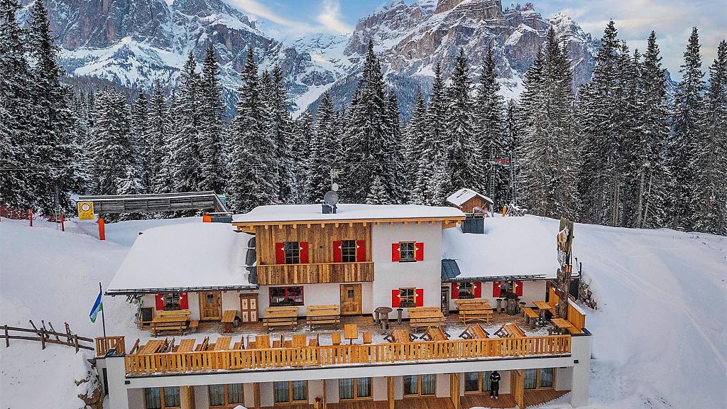 Ristorante curato con specialità locali, terrazza soleggiata con vista panoramica sul ghiacciaio della Marmolada, ambiente familiare. Cene su prenotazione.