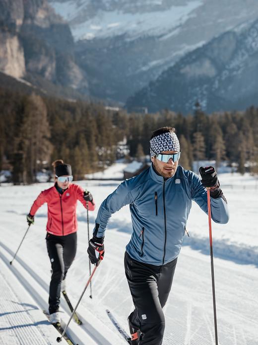 C’è un tracciato che ti aspetta, e parte proprio accanto alla scuola di sci di Corvara. Da lì si allunga tra i prati innevati fino a Pescosta, disegnando un percorso gentile, dal respiro ampio, accessibile a tutti. È la linea perfetta per chi muove i primi passi, ma anche per chi cerca il ritmo fluido dello skating o della tecnica classica.