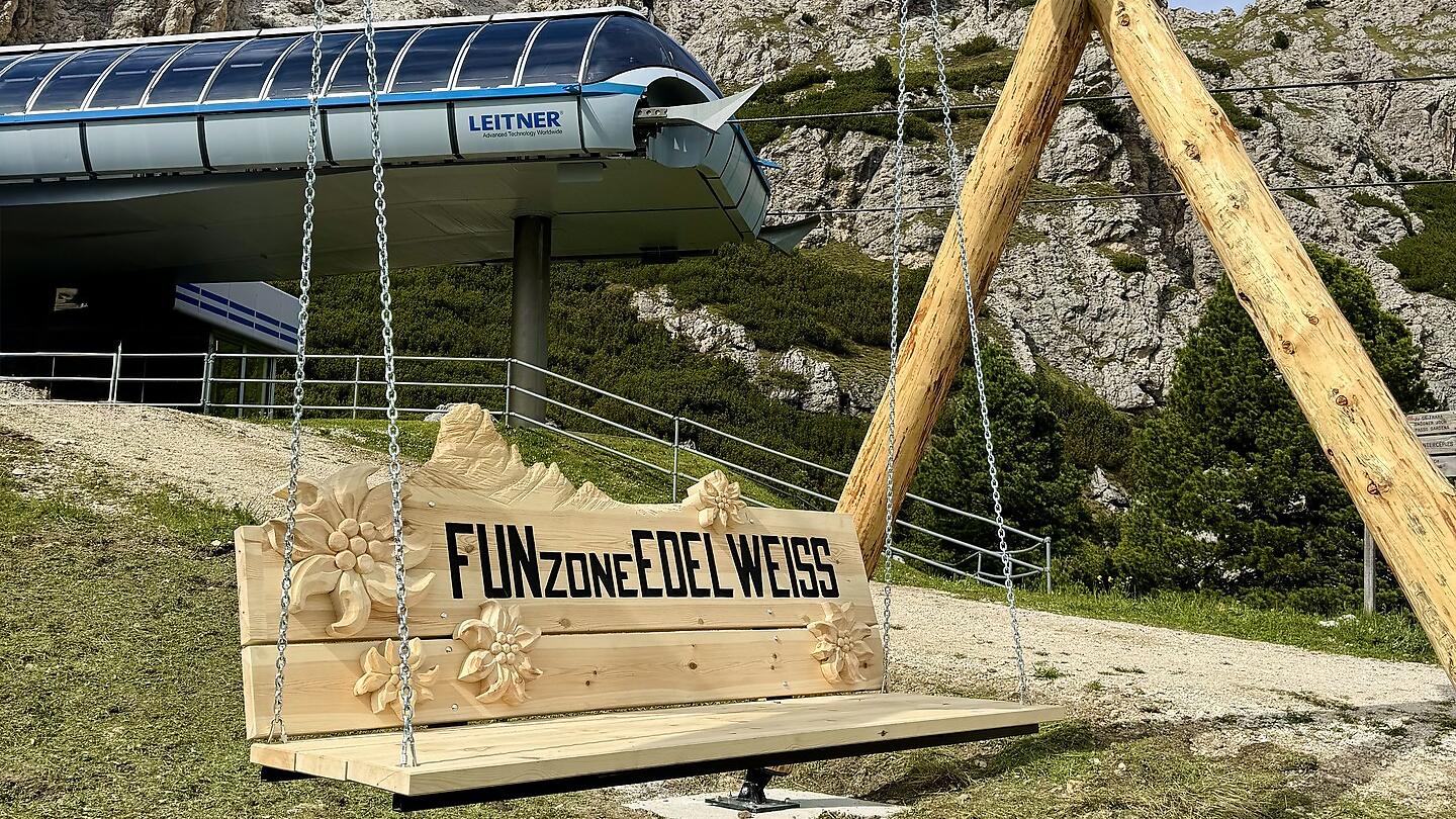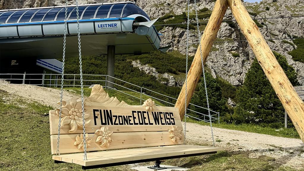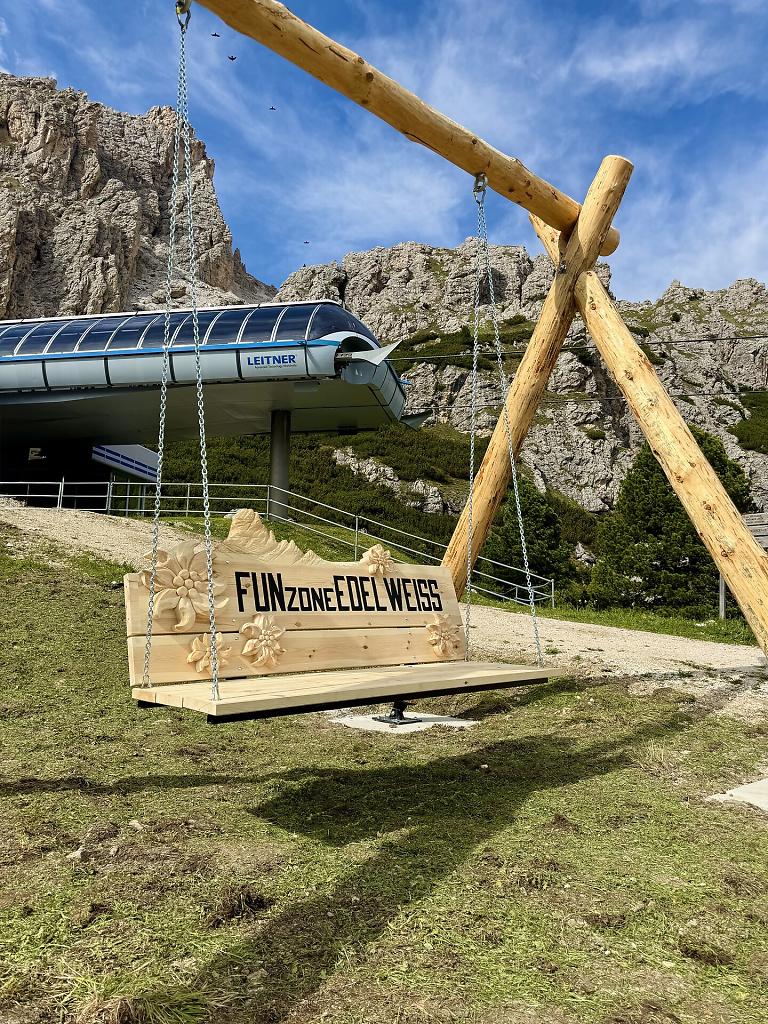 La novità di quest’estate è “La Sbinga”, parola ladina che significa altalena: un angolo speciale dove sedersi e godersi il piacere di dondolarsi ammirando il maestoso gruppo del Sella. Situata a monte dell’impianto di risalita di Plans-Frara, la Sbinga ti farà tornare bambino, lasciandoti incantato dalla magia del paesaggio.